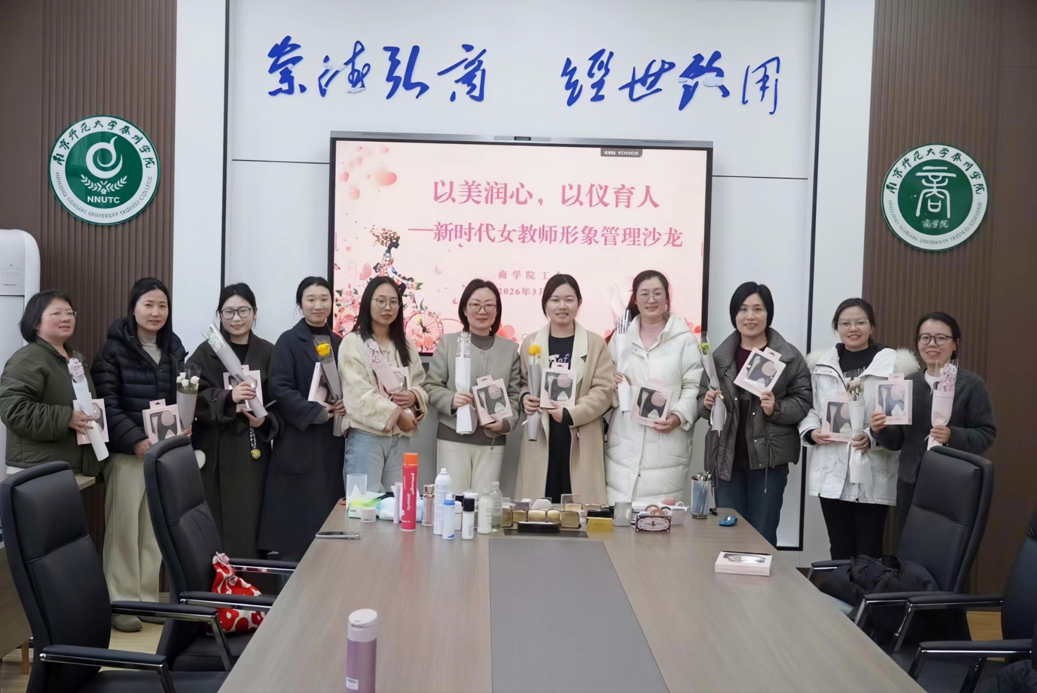 在“三八”国际妇女节来临之际,为凝聚巾帼力量,提升女教师职业形象素养,让优雅得体的职业形象成为无声的教育语言。3月4日下午,商学院工会在文科楼323会议室举办“以美润心,以仪育人——...